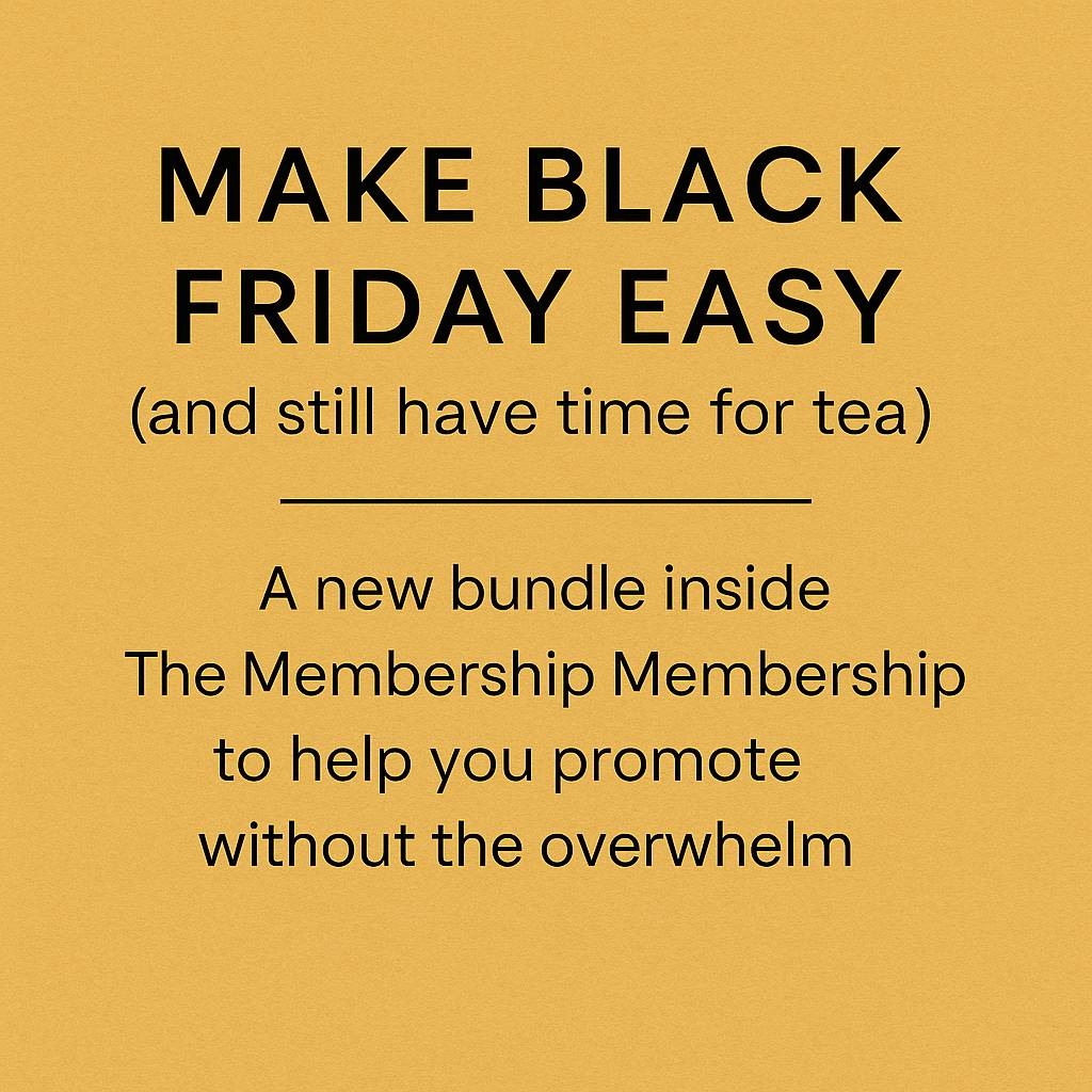 Hey Reader If you’ve been meaning to get your membership/products/course out there finally, but the thought of Black Friday marketing makes you want to hide under a blanket. I’ve got you covered. Inside The Membership Membership, I’ve added a full Black Friday Bundle to help you promote your membership or offer with ease (and zero overwhelm). You’ll get: ✨ Social media post templates ✨ Caption ideas ✨ A full promotion schedule ✨ Reel + Story templates ✨ A complete email sequence All done for...